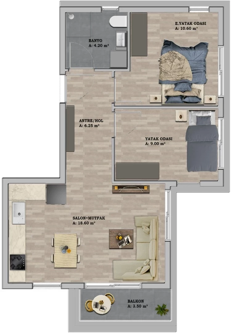 5 Einbausets (Herd, Backofen, Dunstabzugshaube, Mikrowelle, Backofen, Mikrowelle, Geschirrspüler), „Warm Floor“-System und VRF-Klimaanlage,