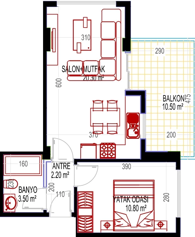 Wohnung zum Verkauf in Alanya. Fläche m²: 54, Zimmer: 1+1, Preis: 105 000 Euro. (ID 476)