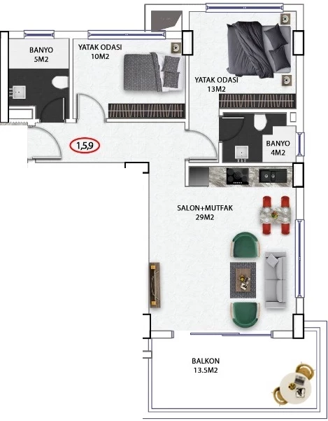 Wohnung zum Verkauf in Alanya. Fläche m²: 76, Zimmer: 2+1, Preis: 165 750 Euro. (ID 483)