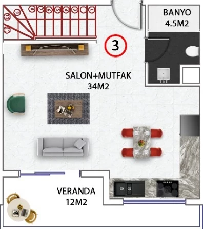 Wohnung zum Verkauf in Alanya. Fläche m²: 102, Zimmer: 2+1 duplex, Preis: 160 000 Euro. (ID 488)