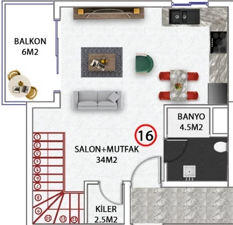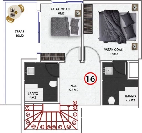 Wohnung zum Verkauf in Alanya. Fläche m²: 102, Zimmer: 2+1 duplex, Preis: 205 000 Euro. (ID 488)