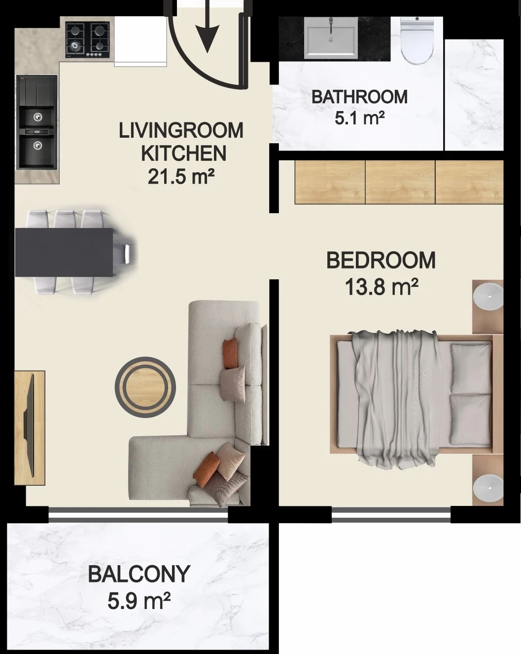 Wohnung zum Verkauf in Alanya. Fläche m²: 66, Zimmer: 1+1, Preis: 259 000 Euro. (ID 493)