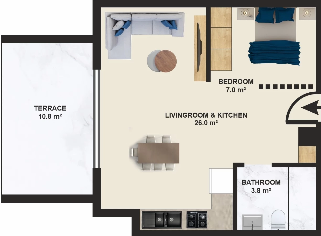 Wohnung zum Verkauf in Alanya. Fläche m²: 67, Zimmer: 1+1, Preis: 291 500 Euro. (ID 493)