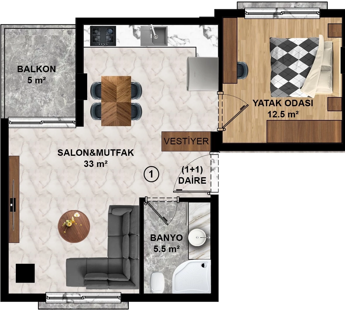 Wohnung zum Verkauf in Alanya. Fläche m²: 81, Zimmer: 1+1, Preis: 550 000 Euro. (ID 496)