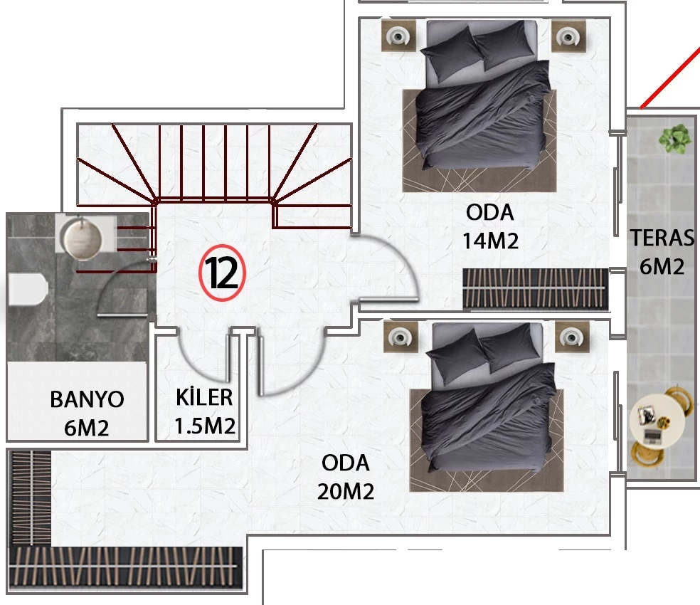 Wohnung zum Verkauf in Alanya. Fläche m²: 85, Zimmer: 2+1 duplex, Preis: 349 000 Euro. (ID 514)