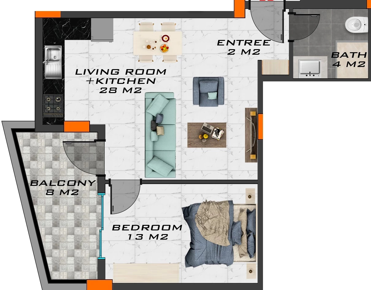Wohnung zum Verkauf in Alanya. Fläche m²: 55, Zimmer: 1+1, Preis: 130 000 Euro. (ID 529)