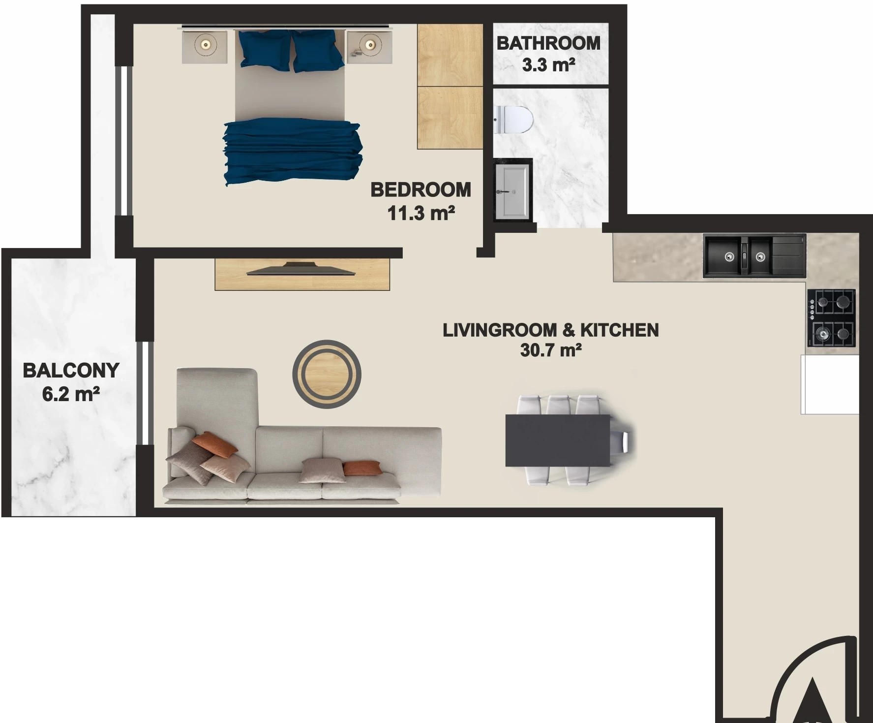 Wohnung zum Verkauf in Alanya. Fläche m²: 68, Zimmer: 1+1, Preis: 265 000 Euro. (ID 535)