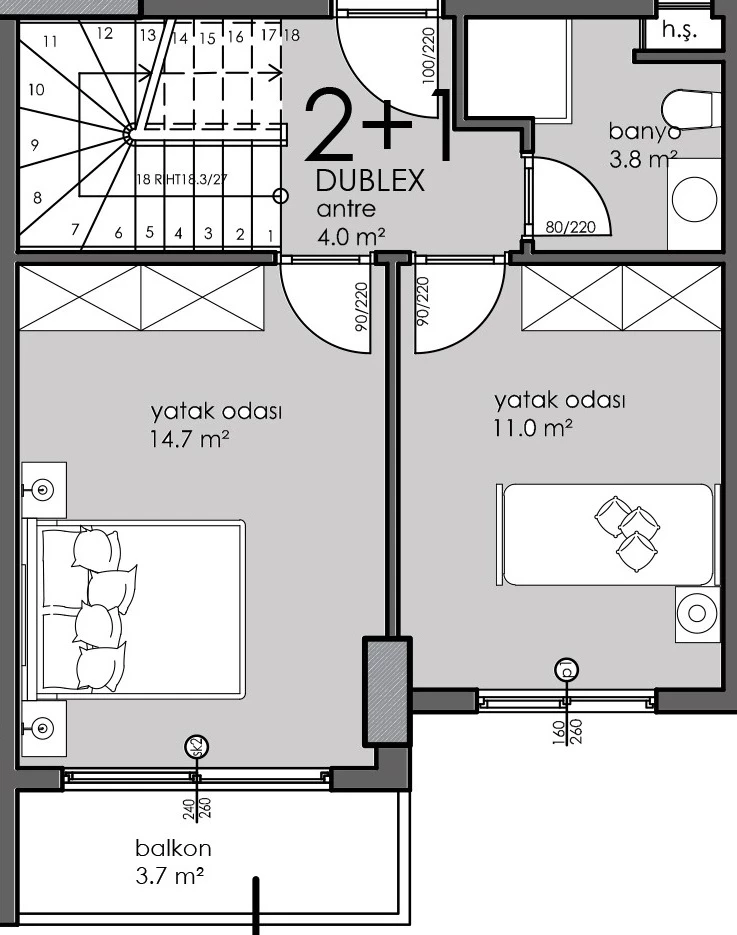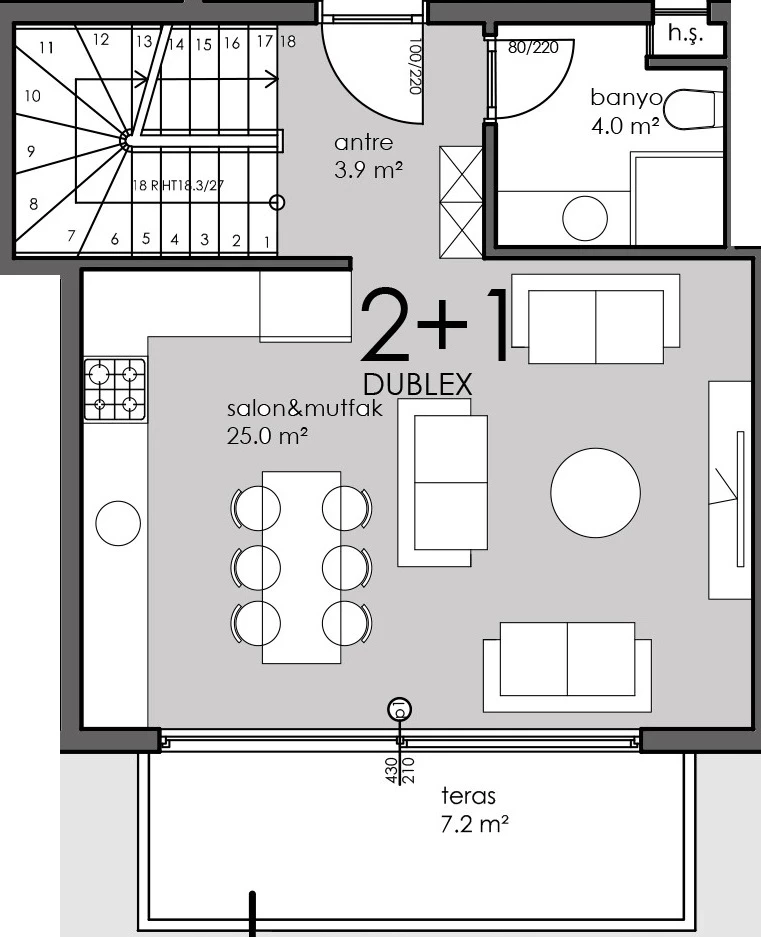 Wohnung zum Verkauf in Alanya. Fläche m²: 119, Zimmer: 2+1 duplex, Preis: 443 000 Euro. (ID 539)