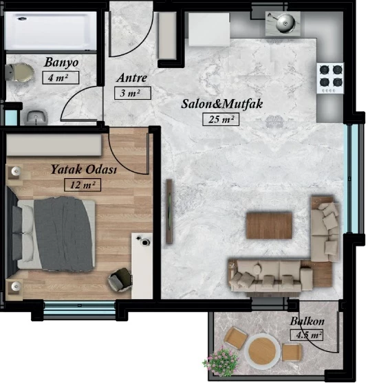1+1 MÖBLIERTE GUTSCHEINWOHNUNG IN ALANYA OBA