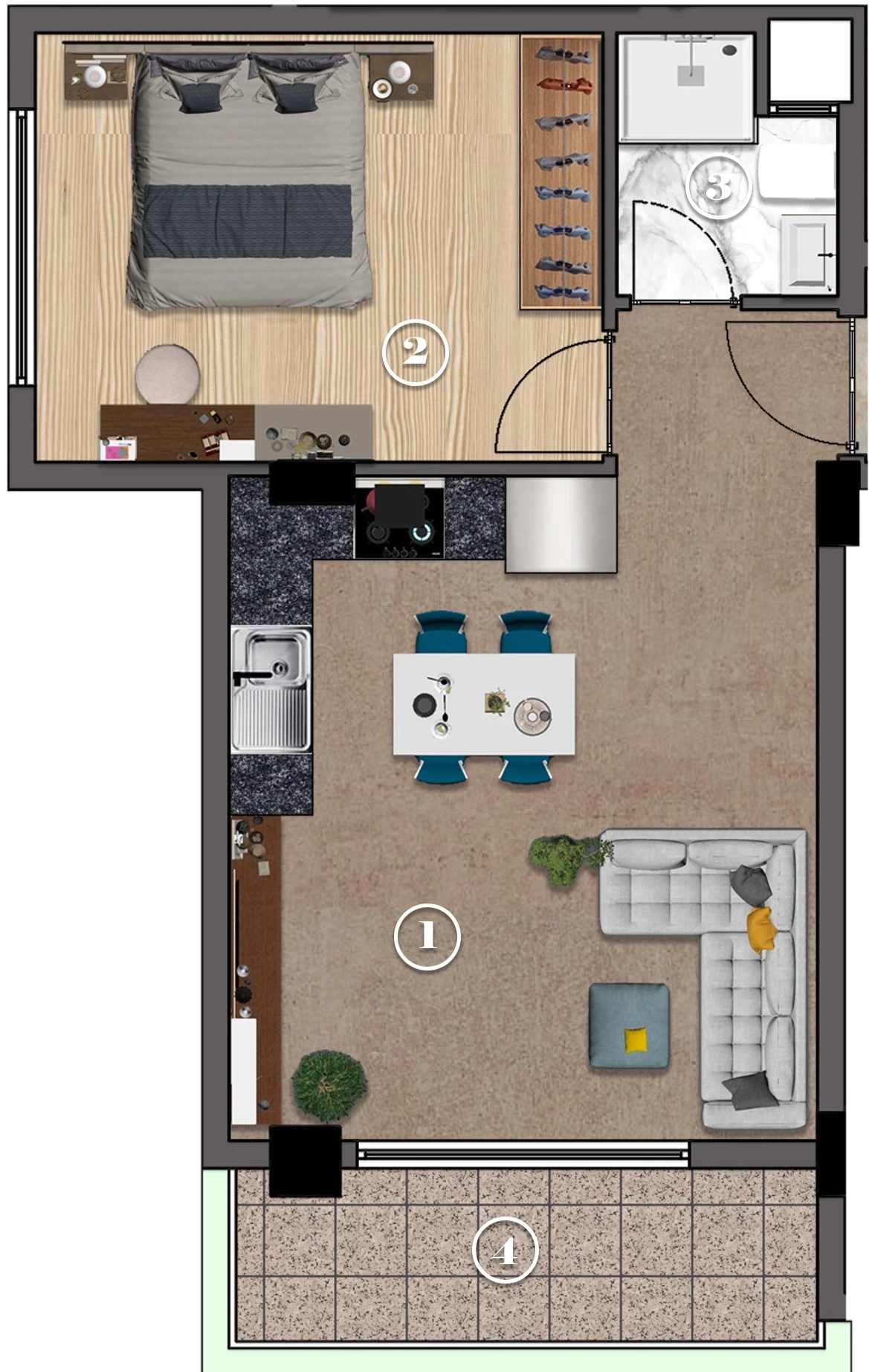 Wohnung zum Verkauf in Alanya. Fläche m²: 58, Zimmer: 1+1, Preis: 135 000 Euro. (ID 556)