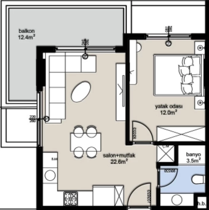 Wohnung zum Verkauf in Alanya. Fläche m²: 70, Zimmer: 1+1, Preis: 151 000 Euro. (ID 557)