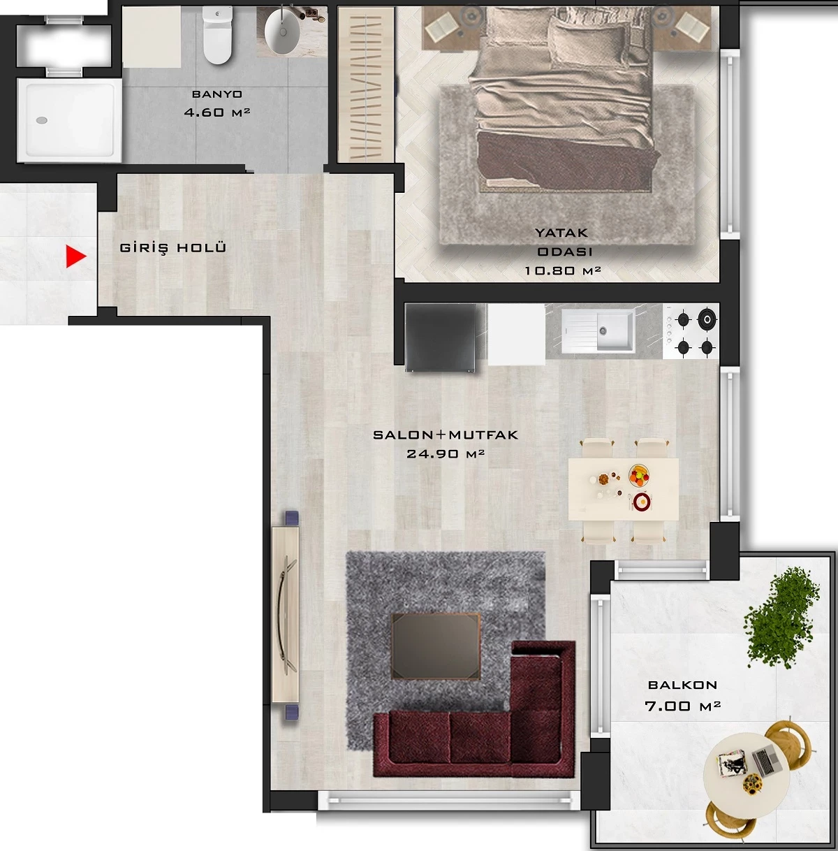 Wohnung zum Verkauf in Alanya. Fläche m²: 60, Zimmer: 1+1, Preis: 155 000 Euro. (ID 563)