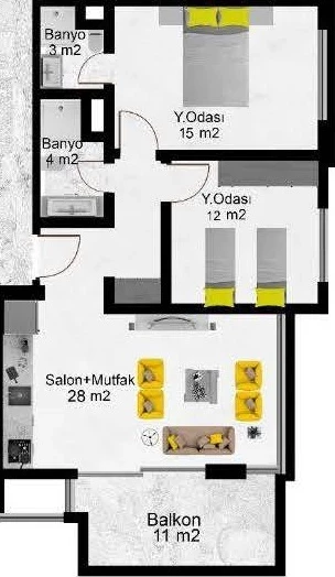 Wohnung zum Verkauf in Alanya. Fläche m²: 83, Zimmer: 2+1, Preis: 369 500 Euro. (ID 564)