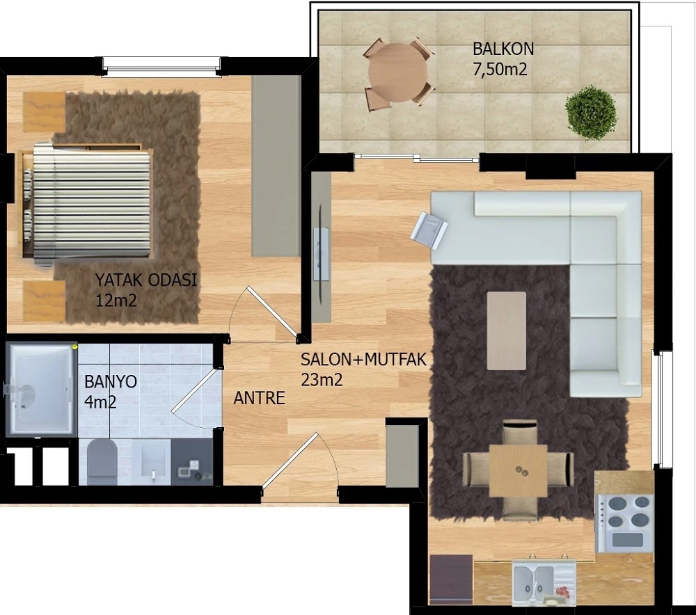 Wohnung zum Verkauf in Serik. Fläche m²: 50, Zimmer:...