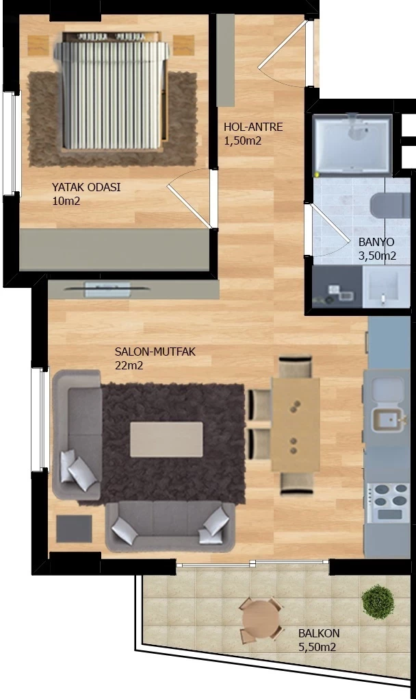 Wohnung zum Verkauf in Alanya. Fläche m²: 55, Zimmer: 1+1, Preis: 115 000 Euro. (ID 571)