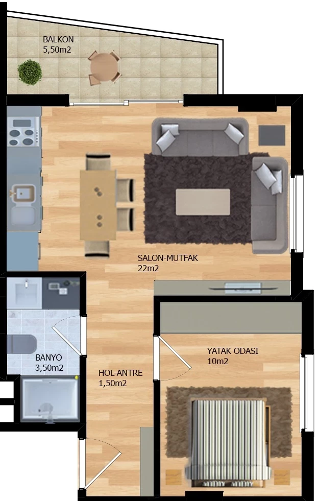 Wohnung zum Verkauf in Alanya. Fläche m²: 55, Zimmer: 1+1, Preis: 145 000 Euro. (ID 571)