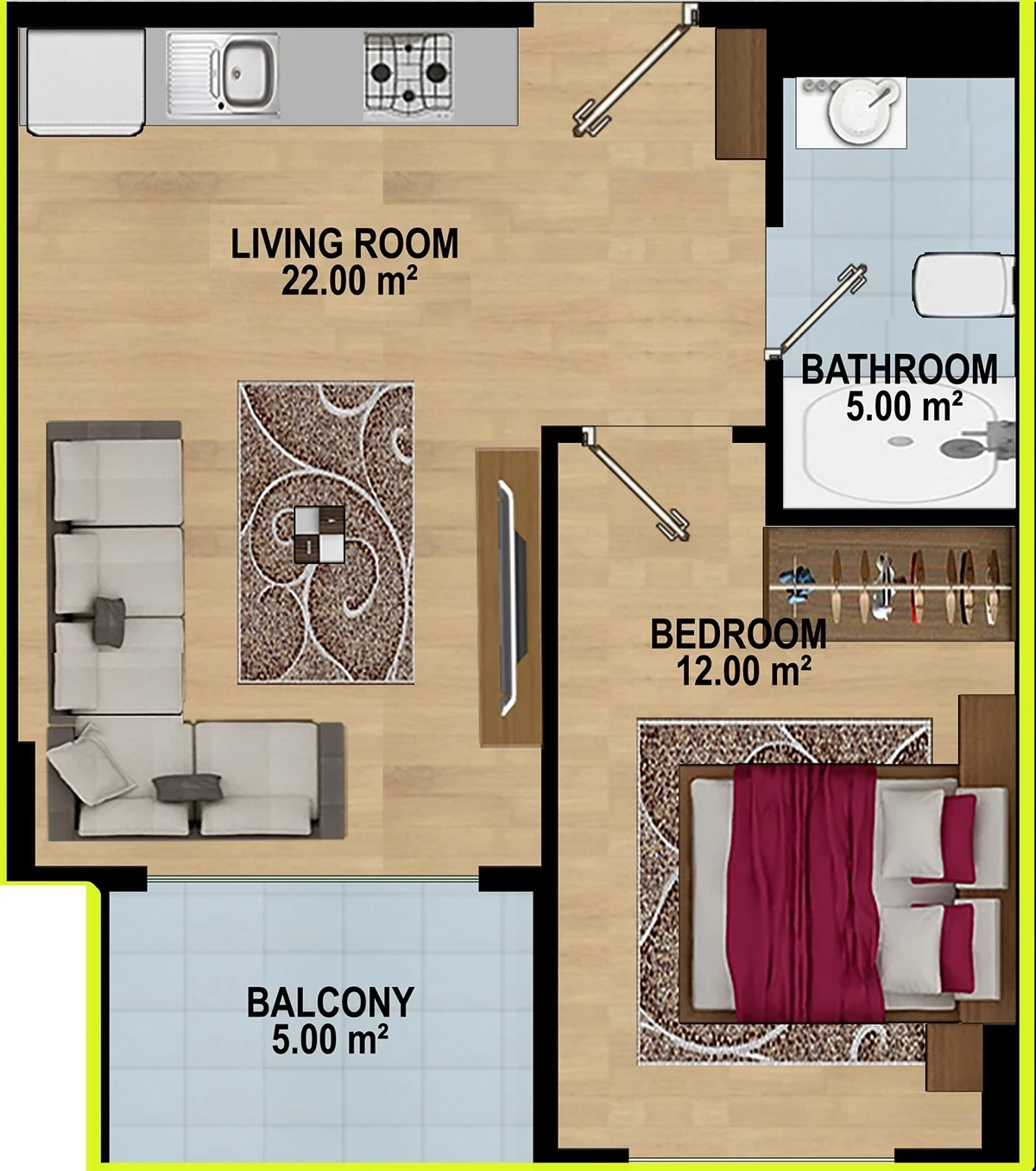 Wohnung zum Verkauf in Alanya. Fläche m²: 43, Zimmer...