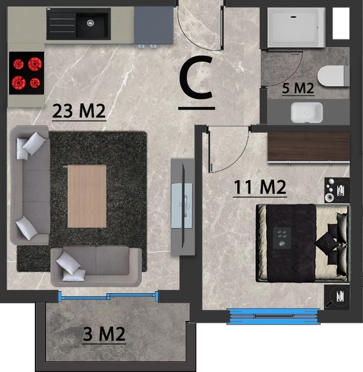 Wohnung zum Verkauf in Alanya. Fläche m²: 43, Zimmer: 1+1, Preis: 143 000 Euro. (ID 580)