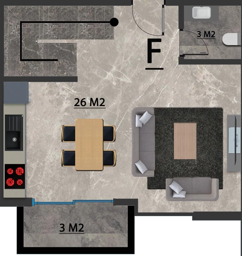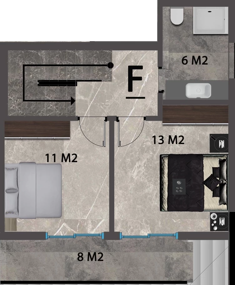Wohnung zum Verkauf in Alanya. Fläche m²: 70, Zimmer: 2+1 duplex, Preis: 255 000 Euro. (ID 580)