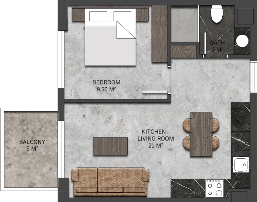 Wohnung zum Verkauf in Alanya. Fläche m²: 60, Zimmer: 1+1, Preis: 174 000 Euro. (ID 582)