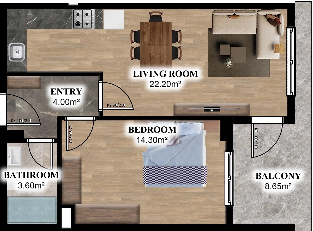 Wohnung zum Verkauf in Alanya. Fläche m²: 65, Zimmer: 1+1, Preis: 209 000 Euro. (ID 584)