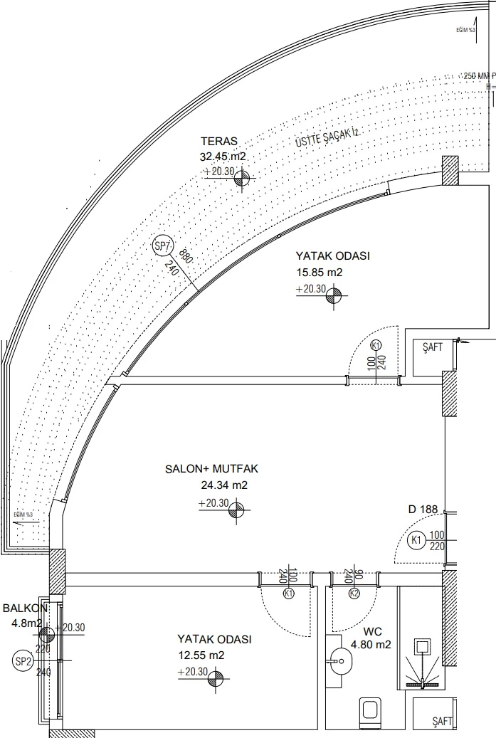 Wohnung zum Verkauf in Antalya. Fläche m²: 110, Zimmer: 2+1, Preis: 192 500 Euro. (ID 740)