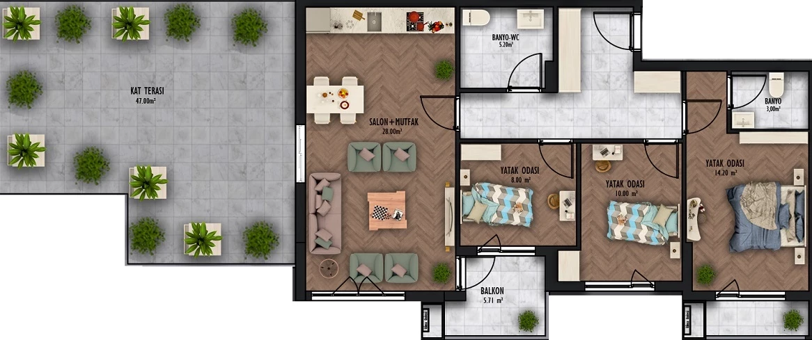 Wohnung zum Verkauf in Aksu. Fläche m²: 102, Zimmer: 3+1, Preis: 427 500 Euro. (ID 120)