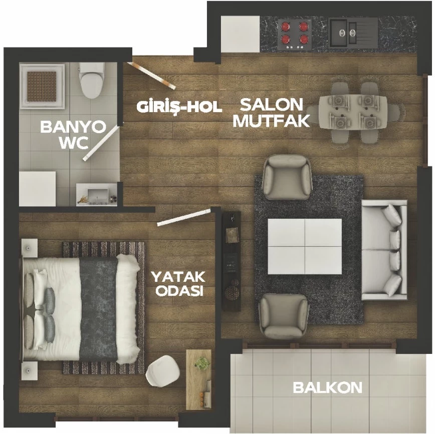 Wohnung zum Verkauf in Aksu. Fläche m²: 65, Zimmer: 1+1, Preis: 124 000 Euro. (ID 118)
