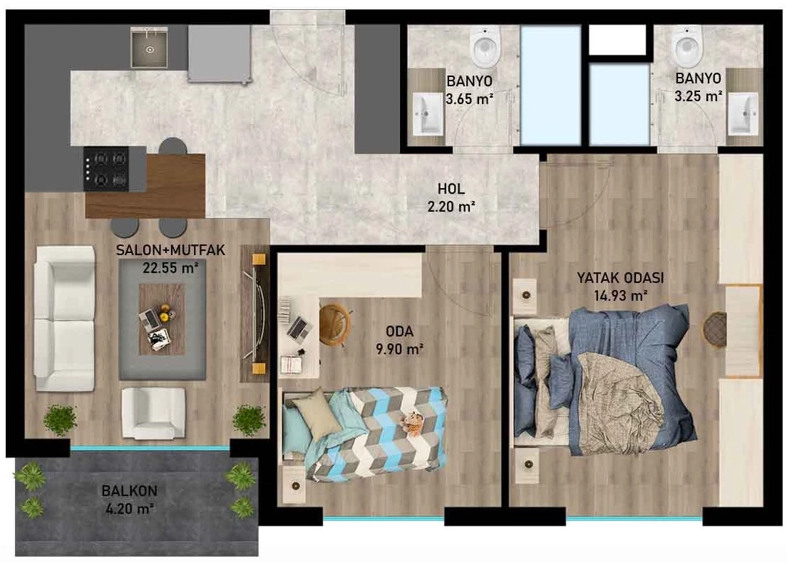 Wohnung zum Verkauf in Aksu. Fläche m²: 69, Zimmer: 2+1, Preis: 260 000 Euro. (ID 383)