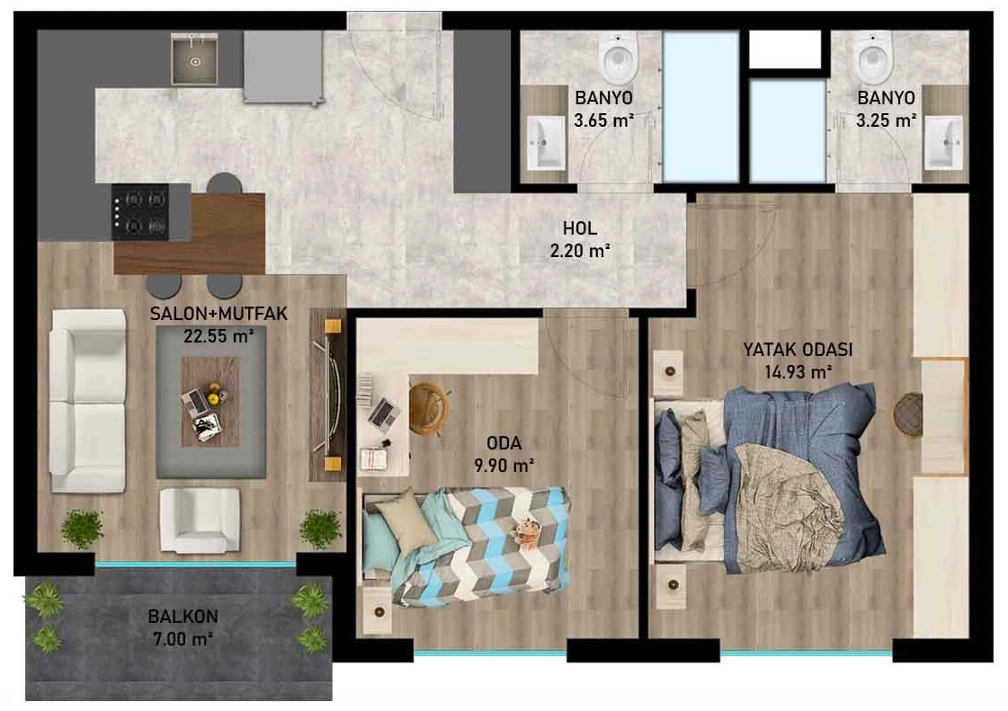 Wohnung zum Verkauf in Aksu. Fläche m²: 70, Zimmer: 2+1, Preis: 270 000 Euro. (ID 383)