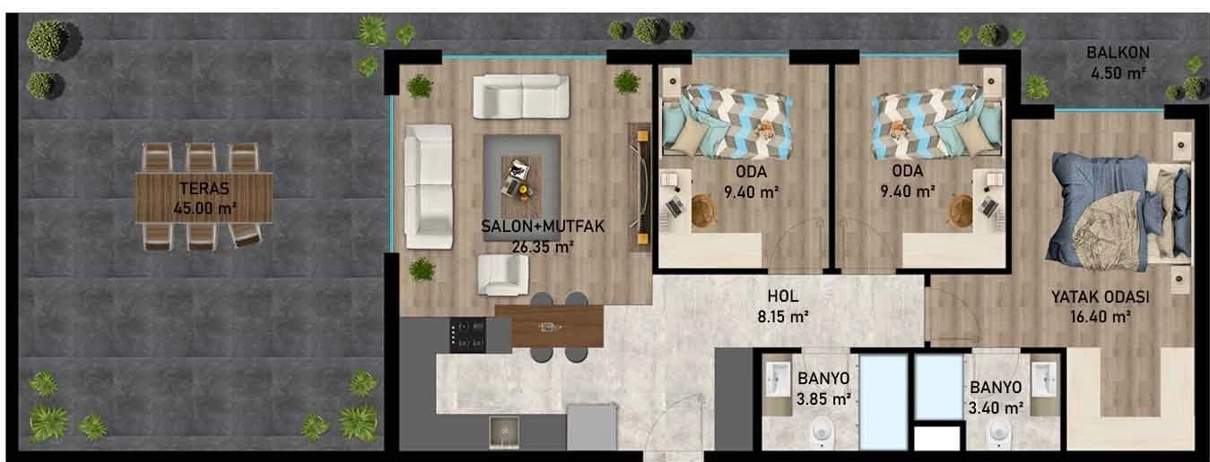Wohnung zum Verkauf in Aksu. Fläche m²: 94, Zimmer: 3+1, Preis: 470 000 Euro. (ID 383)
