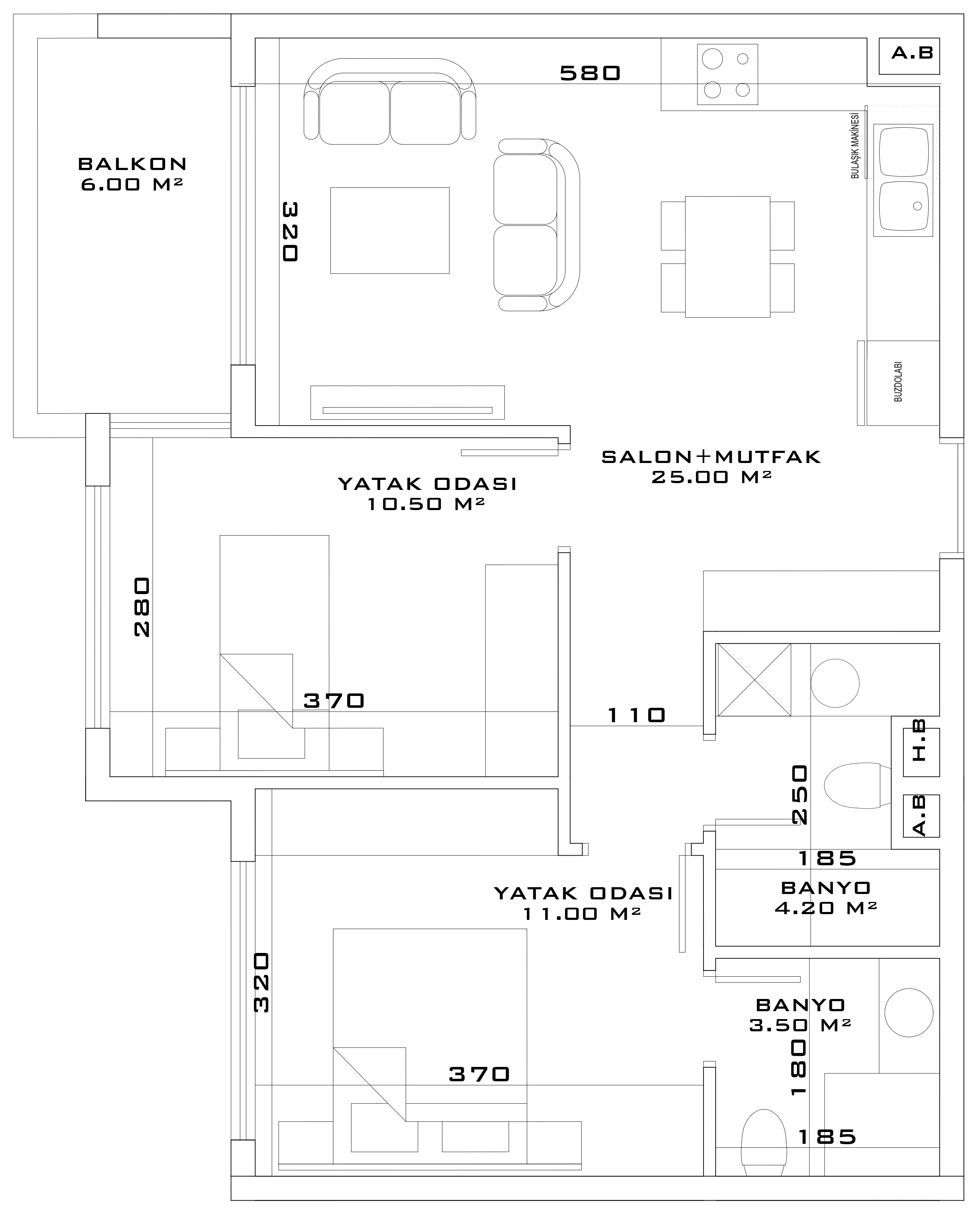 Wohnung zum Verkauf in Aksu. Fläche m²: 108, Zimmer: 2+1, Preis: 175 000 Euro. (ID 384)