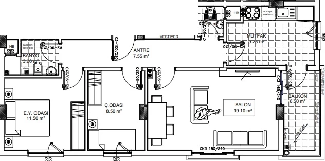 Wohnung zum Verkauf in Kepez. Fläche m²: 84, Zimmer: 2+1, Preis: 119 000 Euro. (ID 404)