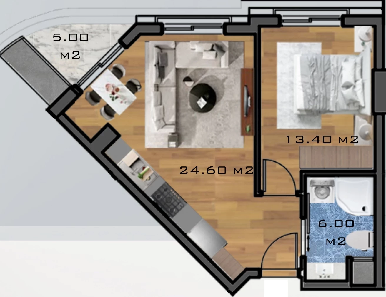 Wohnung zum Verkauf in Konyaalts. Fläche m²: 60, Zimmer: 1+1, Preis: 194 000 Euro. (ID 411)