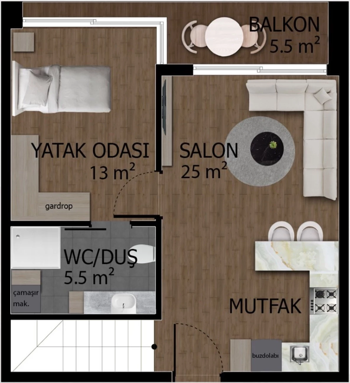 Wohnung zum Verkauf in Serik. Fläche m²: 85, Zimmer: 2+1 duplex, Preis: 260 000 Euro. (ID 413)
