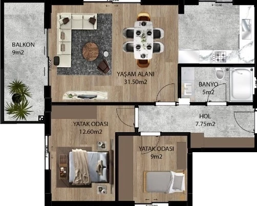 Wohnung zum Verkauf in Aksu. Fläche m²: 80, Zimmer: 2+1, Preis: 220 000 Euro. (ID 421)