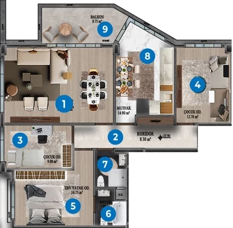 Wohnung zum Verkauf in Kepez. Fläche m²: 135, Zimmer: 3+1, Preis: 494 000 Euro. (ID 425)