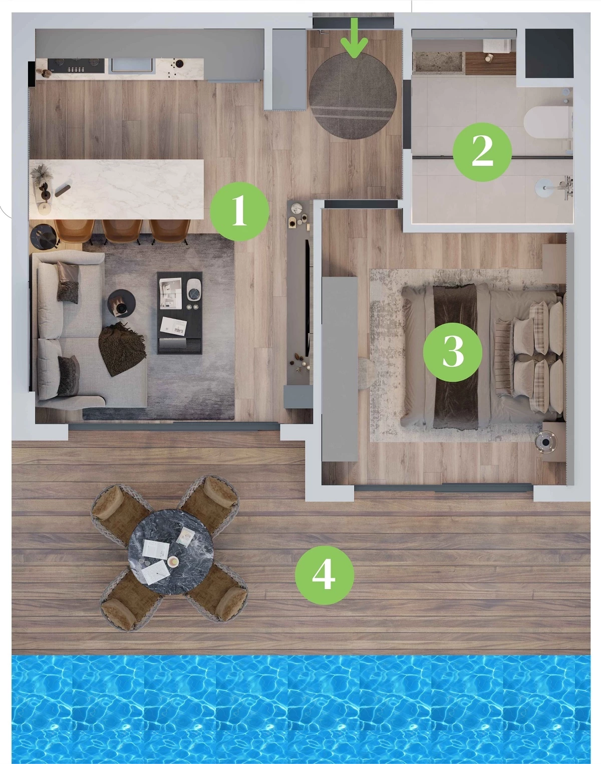 Wohnung zum Verkauf in Aksu. Fläche m²: 68, Zimmer: 1+1, Preis: 190 000 Euro. (ID 430)