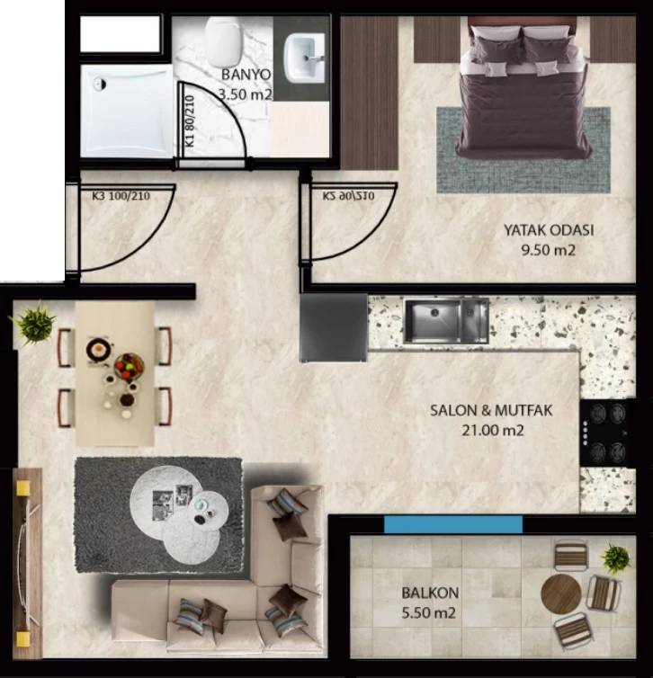 Wohnung zum Verkauf in Alanya. Fläche m²: 47, Zimmer...