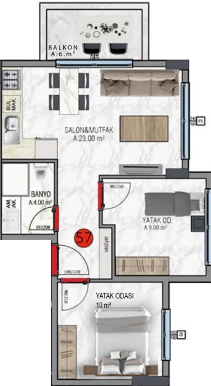 Wohnung zum Verkauf in Alanya. Fläche m²: 64, Zimmer: 2+1, Preis: 204 980 Euro. (ID 448)