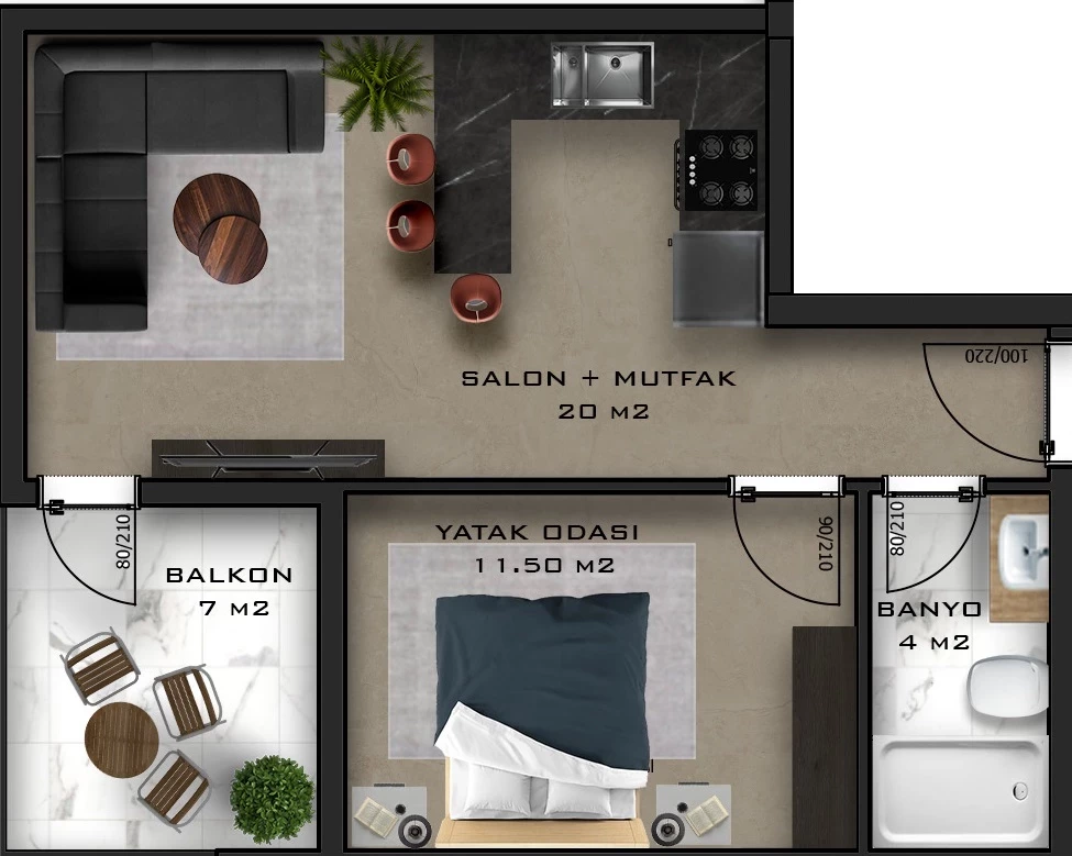 Wohnung zum Verkauf in Alanya. Fläche m²: 50, Zimmer: 1+1, Preis: 98 000 Euro. (ID 451)