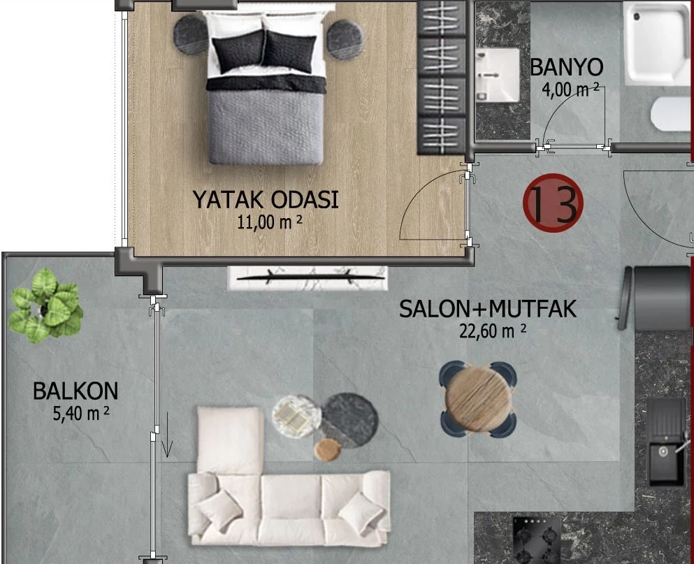 Wohnung zum Verkauf in Alanya. Fläche m²: 43, Zimmer: 1+1, Preis: 207 000 Euro. (ID 463)