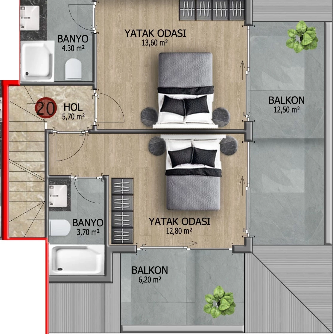 Wohnung zum Verkauf in Alanya. Fläche m²: 104, Zimmer: 2+1 duplex, Preis: 490 000 Euro. (ID 463)