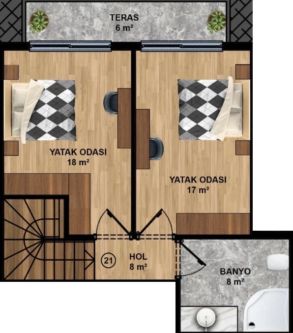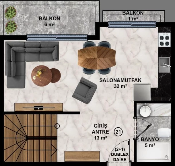 Wohnung zum Verkauf in Alanya. Fläche m²: 114, Zimmer: 2+1 duplex, Preis: 165 000 Euro. (ID 467)