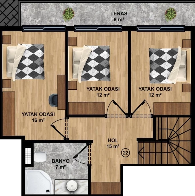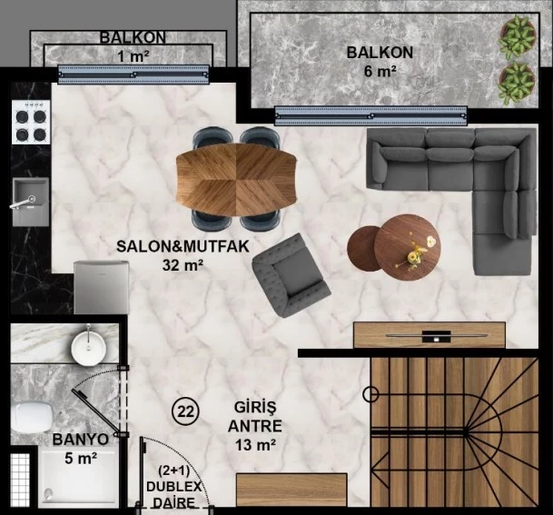 Wohnung zum Verkauf in Alanya. Fläche m²: 128, Zimmer: 3+1 duplex, Preis: 183 500 Euro. (ID 467)