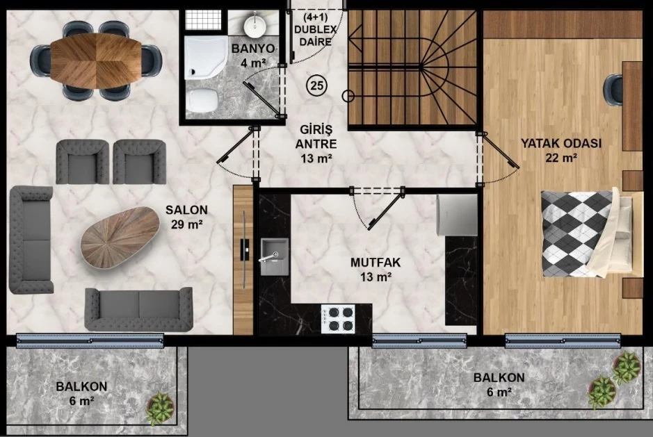 Wohnung zum Verkauf in Alanya. Fläche m²: 197, Zimmer: 4+1 duplex, Preis: 205 000 Euro. (ID 467)