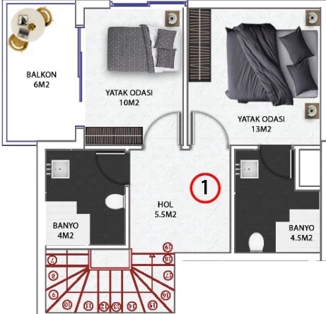 қаласында сатылатын пәтер Аланья. Ауданы, м: 59, нөм...