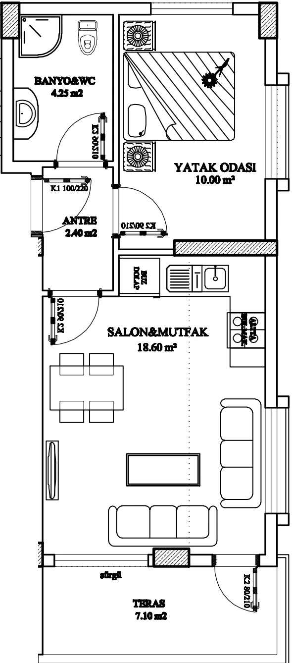 Мехмет Акиф Ерсой мах 2+1 90М2 ш. м. табиғи ГАЗ есік...