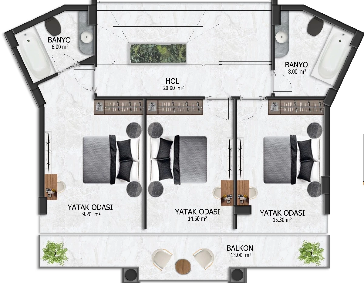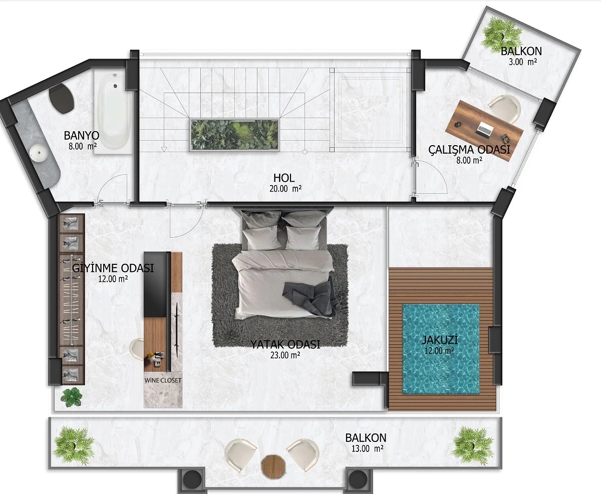 қаласында сатылатын пәтер Аланья. Ауданы, м: 270, нөмірлер: 4+1 triplex, бағасы: 1 180 000 евро. (ID 513)