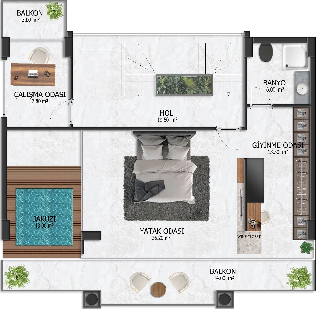 қаласында сатылатын пәтер Аланья. Ауданы, м: 281, нөмірлер: 4+1 triplex, бағасы: 1 180 000 евро. (ID 513)